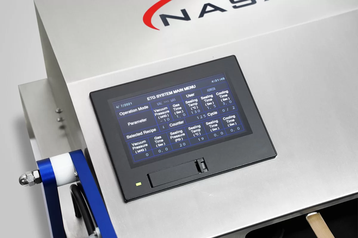 NasaVAC Columbia series validatable nozzle type vacuum sealer is equipped with ultra-impulse sealing system capable of temperature control and feedback system. The sealer produces consistent hermetic seals for a wide range of heat sealable materials coupled with temperature control, seal pressure control, microcontroller sealing and cooling timers. The Bi-Active impulse sealing system (top & bottom heating) seals Tyvek®, almost any medical pouch sealing application, all popular moisture barrier bag materials, anti-static pouches, and complex materials from 30” to 40” (bag opening length).