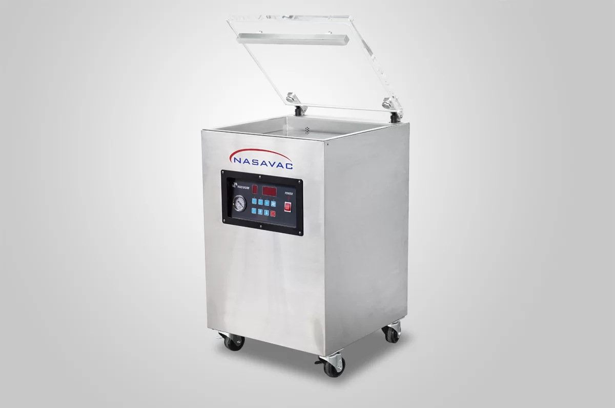 NEPTUNE 16X – floor standing single chamber vacuum sealer has digital control, single sealing bar, and optional soft air to prevent damage to delicate products. The transparent glass lid assist in vacuum packaging process visualization. The control system is powered by micro-controller with 10 programmable memory settings.
