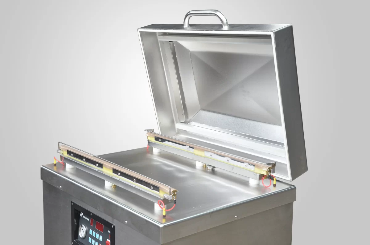 NEPTUNE 38 – versatile jumbo vacuum sealer with two side of the sealing bar, mobility, and heavy duty usage. It is ideal for the packaging of several pouches per cycle of large sized products. The control system is powered by microcontroller with 10 programmable memory settings. The single chamber vacuum sealer is fully industrial grade stainless steel constructed, ideal for food, medical, electronics and industrial applications. It has flatten working platform for hassle-free chamber wash down. The optional soft air prevents damage to delicate products